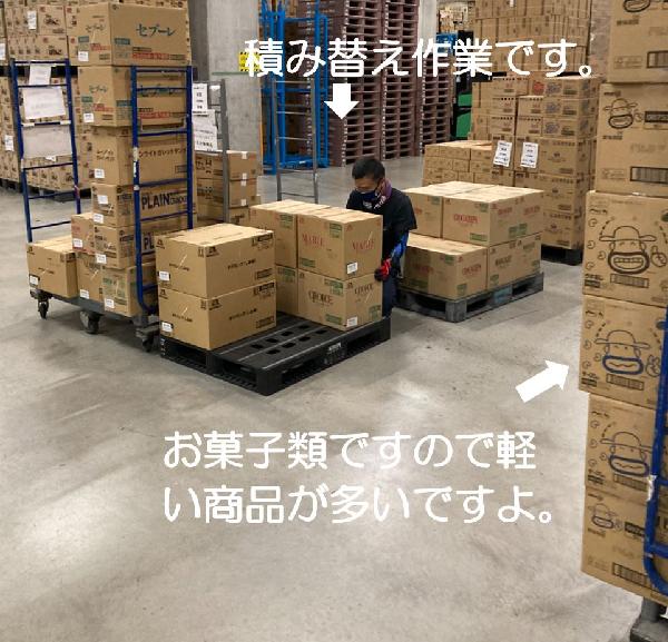【男性が活躍している職場!!】【★前払い制度あり!!】【単発!!】【週1日から!!】【シフト自由】菓子商品をカゴ車へ積み替える、パレットに積み替える、片づける等の単純作業商品はお菓子類ですので軽い商品が多いです!!月に5回以上勤務出来る方、グループメンバー募集中!★お仕事内容動画!是非ご覧ください!!お仕事内容動画(YouTube)→https://youtube.com/shorts/_YHOeA-6PCg 最寄のバス停からの道案内動画→https://www.youtube.com/shorts/9X5hVUGAVcg>